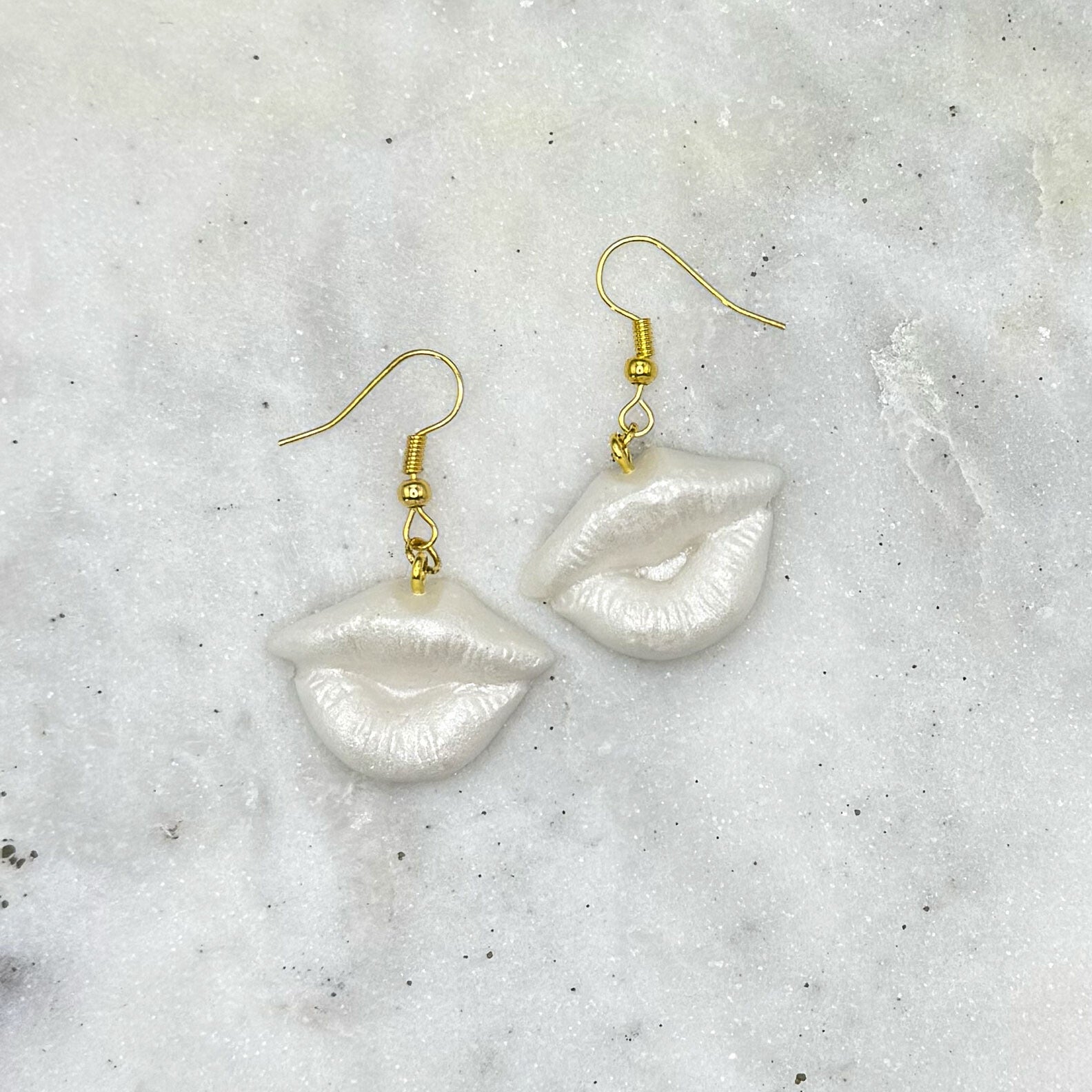 Vita örhängen "lips" med guldfärgad krok