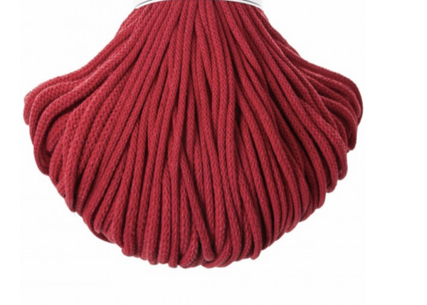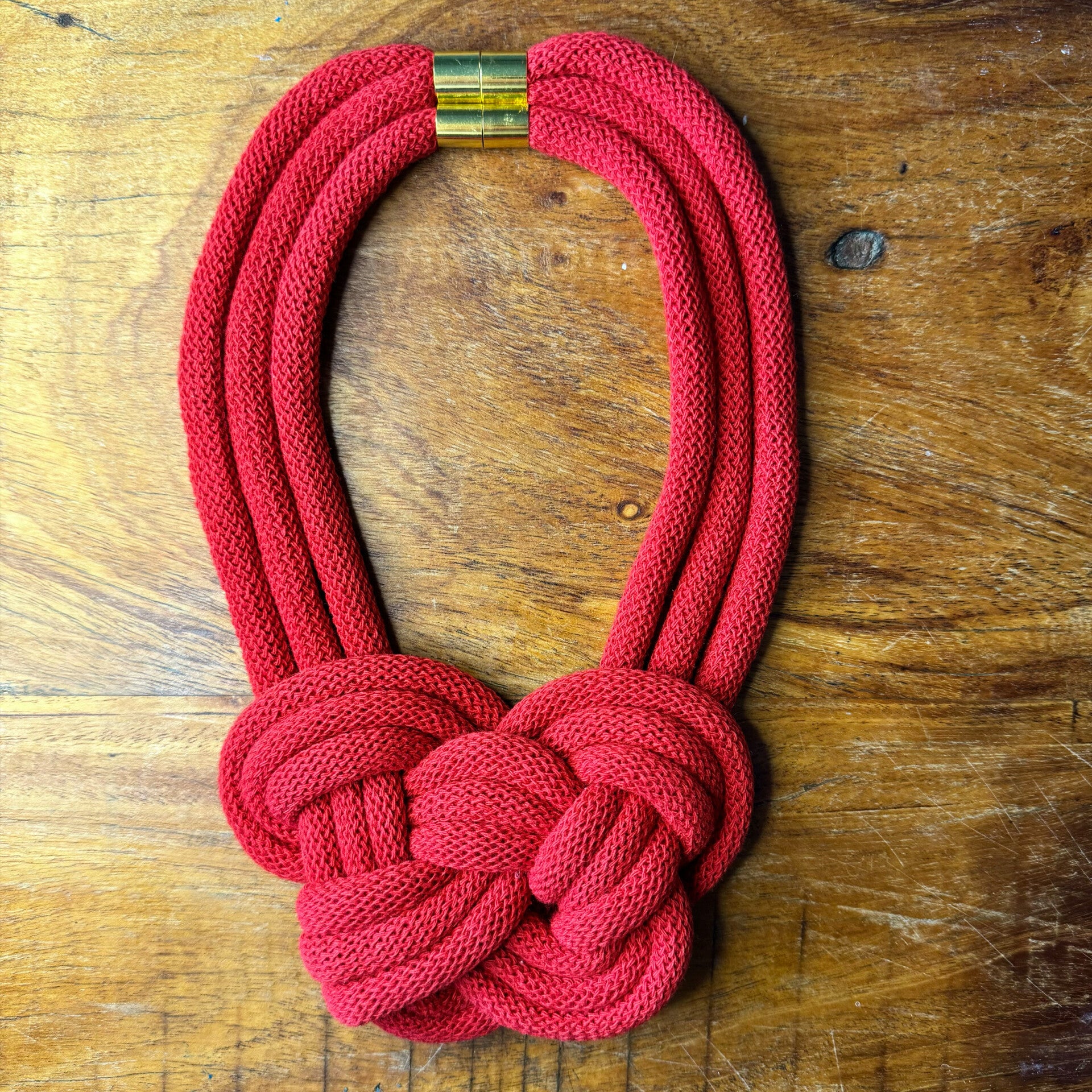 Rött halsband i makramé, med guldpläterat magnetlås.